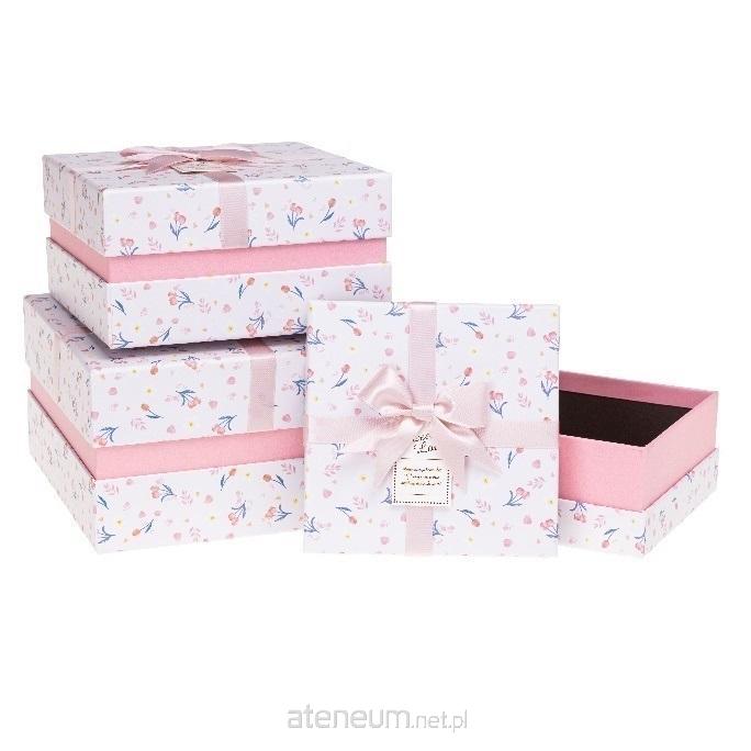 Pudełko prostokątne z kokardą 3szt różowy ROZETTE