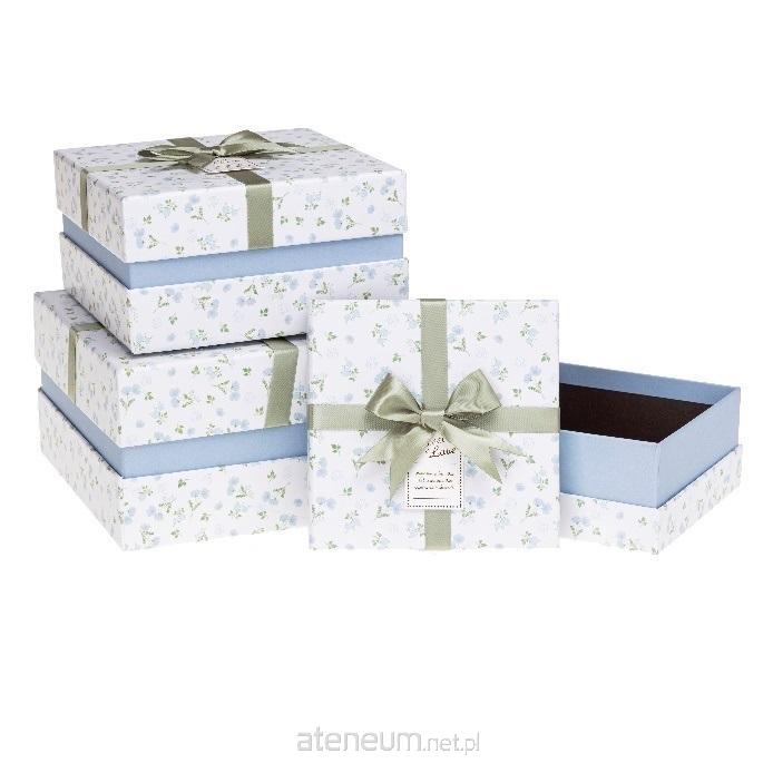 Zestaw pudełek prezentowych 3szt, motyw biało-błękitny z drobnymi kwiatkami