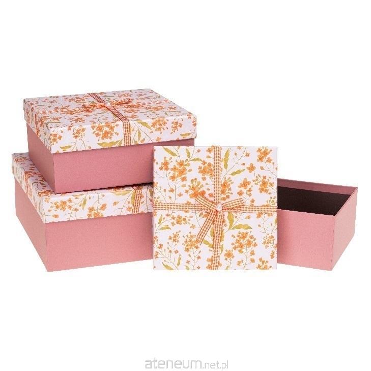 Zestaw pudełek prezentowych 3szt, motyw różowy z pomarańczowymi kwiatami