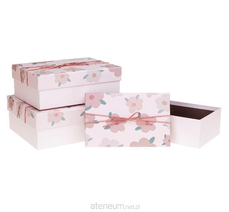 Zestaw pudełek prezentowych 3szt, różowe kwiaty