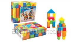 Zestaw miękkich (wykonanych z elastycznego tworzywa) i twardych (plastikowych) klocków, bezpiecznych dla dzieci