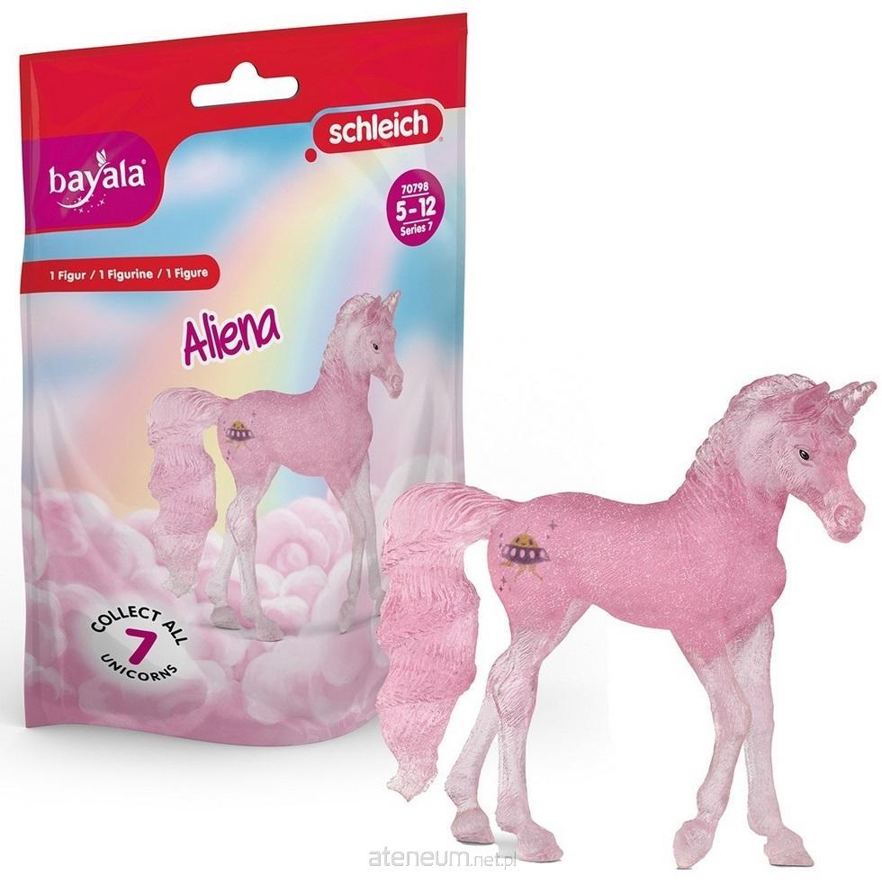 Jednorożec Aliena wyróżnia się pudrowo różową, błyszczącą sierścią. Na jego rodzinnej planecie każdy konik ma właśnie takie, kolorowe umaszczenie. To dlatego, że młode zwierzęta jedzą na śniadanie, obiad i kolację żelki o ulubionym smaku. Jakie są najlepsze? Malinowe!