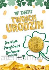 Karnet Moneta formatu B6, wraz z kopertą, moneta wykonana z czekolady.