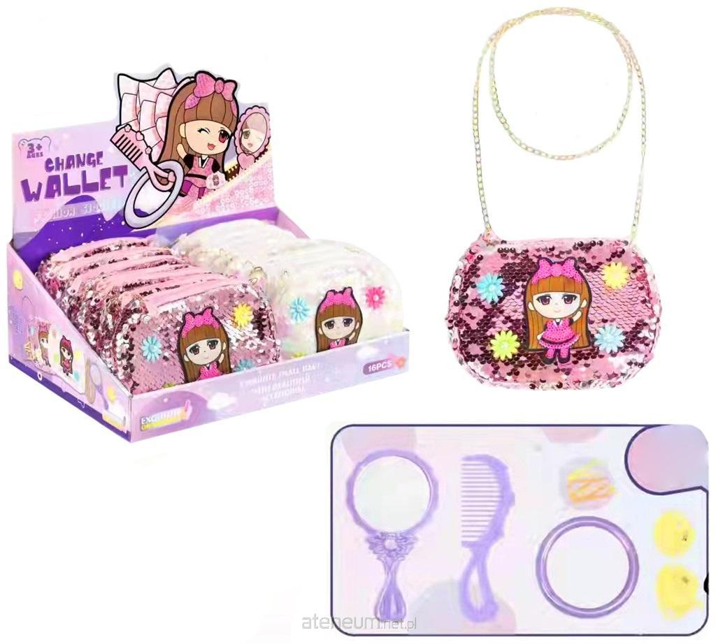 Zestaw piękności zapakowany w elegancką torebkę z cekinami.