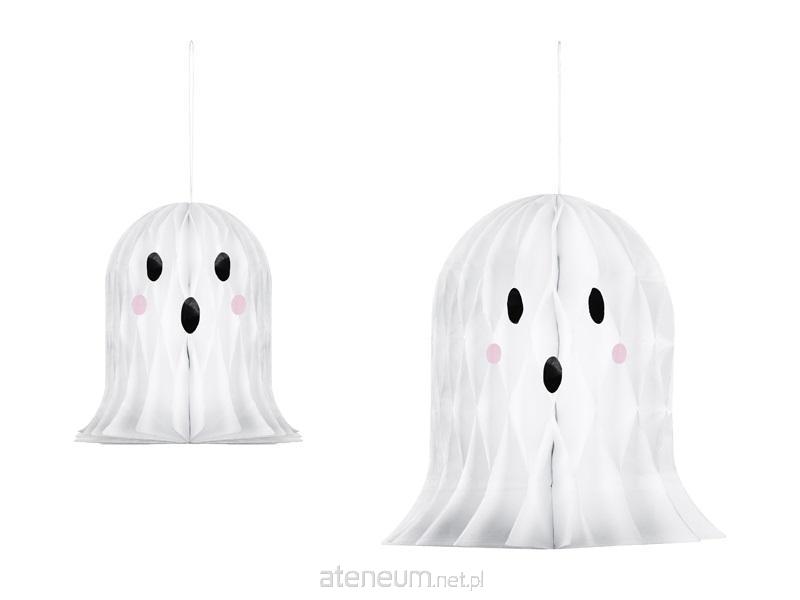 Dekoracje papierowe Duszki w kolorze białym, wysokość ok. 20 i ok. 30 cm. Produkt wielokrotnego użytku. Montaż przy pomocy spinacza.(1 op. / 2 szt.)