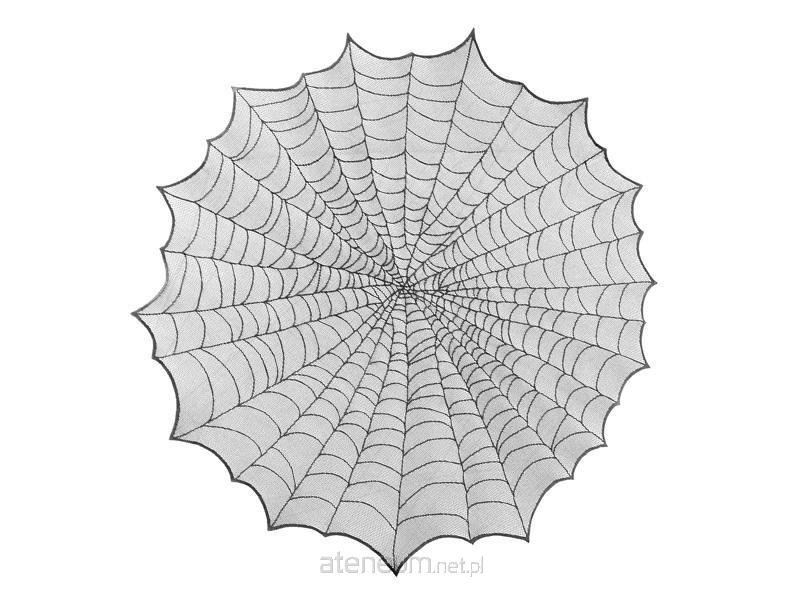 Obrus jednostronny Pajęczyna w kolorze czarno-szarym, średnica ok. 124 cm. Skład: poliester - 100%. Sposób konserwacji: prać ręcznie.