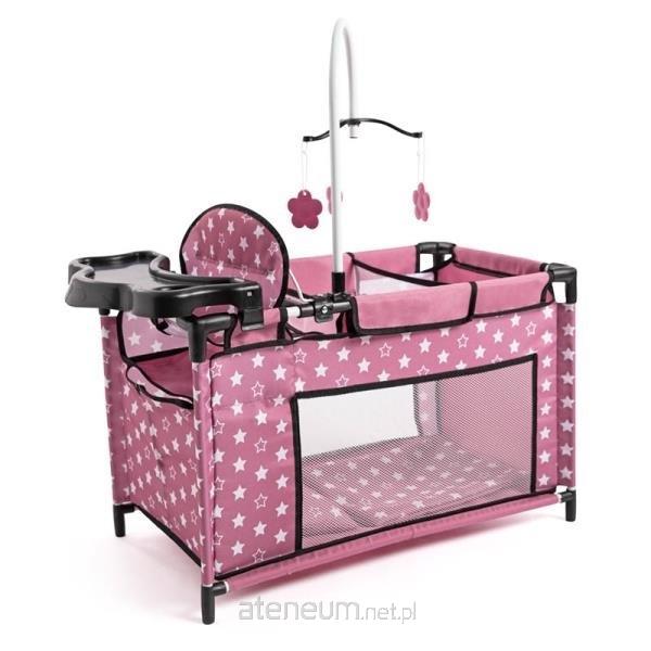 Lóżko dla lalek oferuje niezliczone możliwości zabawy. W zintegrowanym wysokim krzesełku można wygodnie karmić lalki dzięki tacy jadalnej. Do przechowywania akcesoriów lalki lóżko zawiera przegródkę, która można łatwo zamknąć i otworzyć dzięki zapięciu na rzepy. Dzięki dołączonym do zestawu wieszakom (3 sztuki) ubranka lalki można powiesić. Dodatkowo za siedziskiem przewidziano miejsce do przewijania lalki. Dzięki mobilowi lalka jest zawsze zabawiana podczas przewijania. Dołączona do zestawu poduszka i kocyk zapewniają lalce przytulny sen.