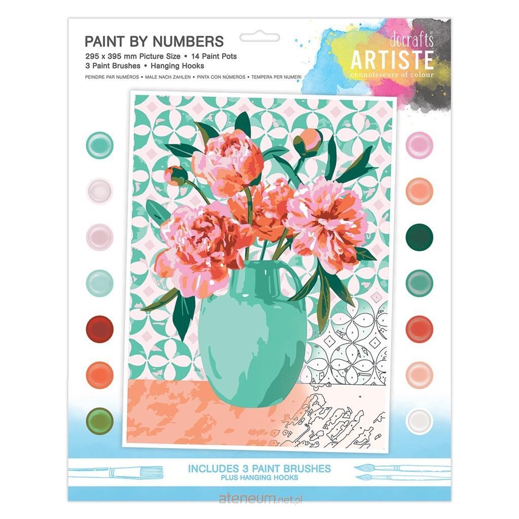 Zestaw zawiera: tekturowe podobrazie 395 x 295 x 2 mm, 14 pojemników z farbą akrylową i 3 pędzelki.