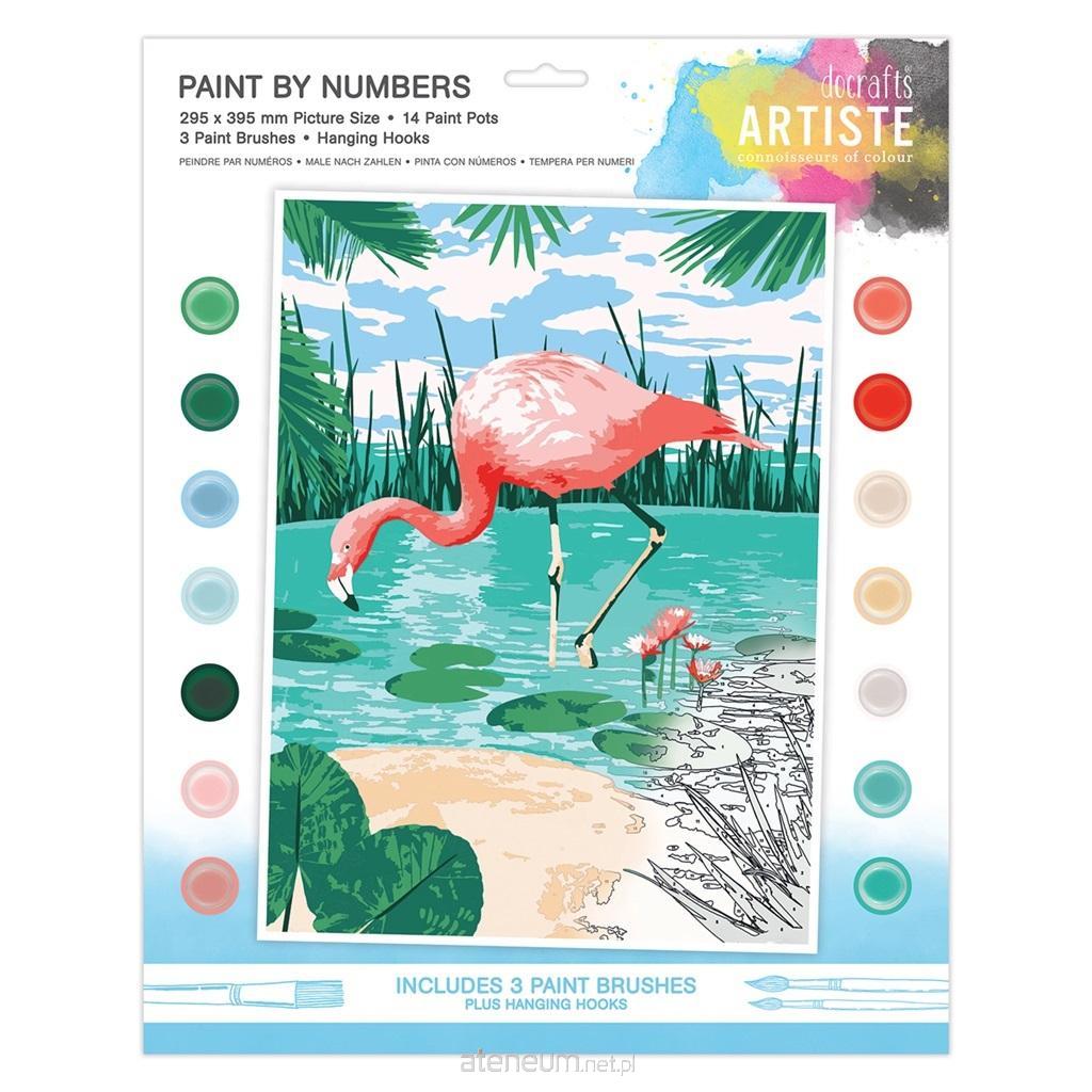 Zestaw zawiera: tekturowe podobrazie 395 x 295 x 2 mm, 14 pojemników z farbą akrylową i 3 pędzelki.