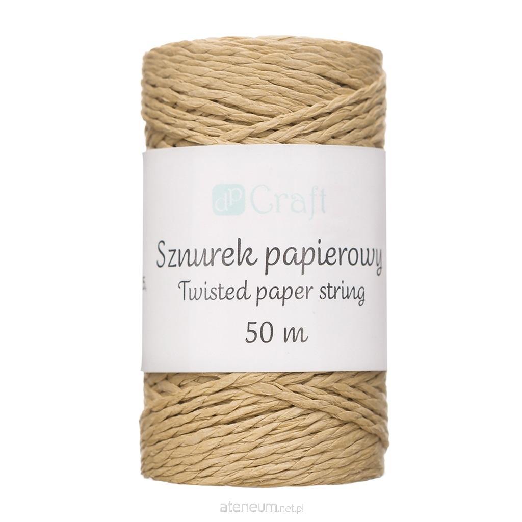 Skręcany sznurek papierowy w kolorze ciemnobeżowym, idealny do różnych prac kreatywnych oraz okazyjnego pakowania prezentów.