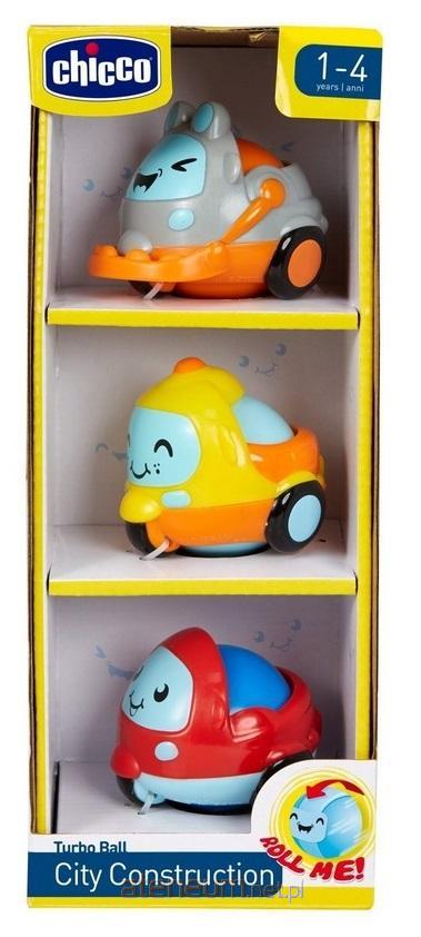 3 mini pojazdy napędzane kulą do pierwszych przygód malucha na placu budowy.