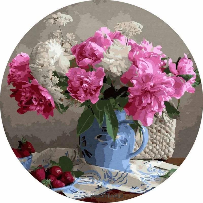 Malowanie po numerach okrągłe - Kwiaty i truskawki