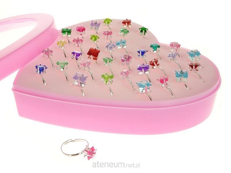 zestaw 36 pierścionków, regulowane w plastikowym etui - serce; Box