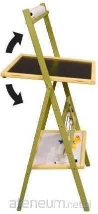 Obrotowa, suchościeralno-kredowo-magnetyczna tablica z 2-rzędowym liczydłem i ROLKĄ papieru do rysowania, zegar z ruchomymi wskazówkami. Gąbka, kreda, marker, literki magnetyczne w zestawie.