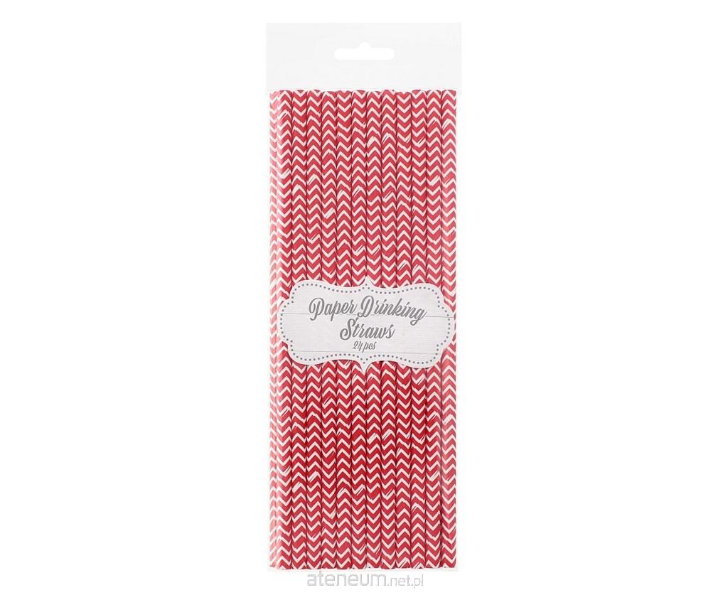 Słomki papierowe czerwone szlaczki 24szt