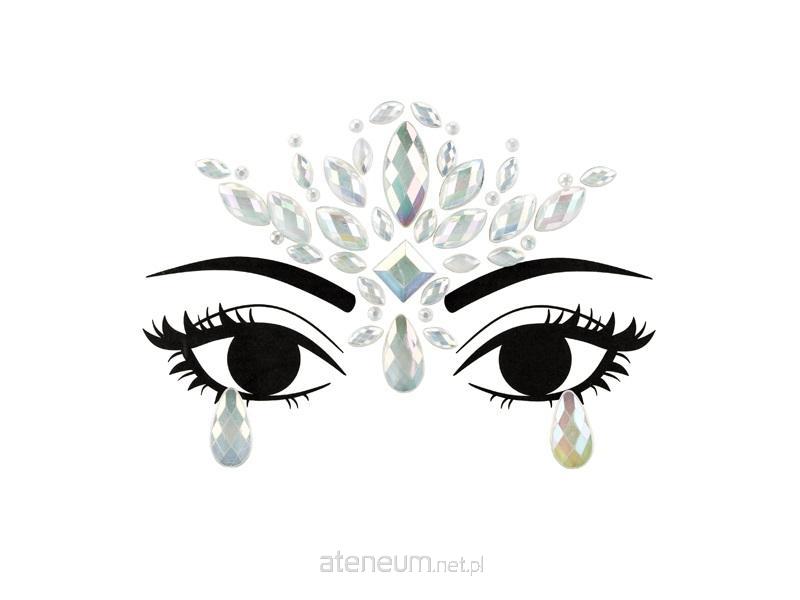 "Świecące w ciemności, samoprzylene kryształki do dekoracji twarzy, rozmiar zestawu ok. 9.5x8.5 cm. Produkt jednorazowego użytku. Kryształki łatwo przykleić do skóry twarzy dzięki samoprzylepnej warstwie. Nie nakładać na wrażliwą skórę lub oczy. Skład: akryl - 98%, PVC - 2%."