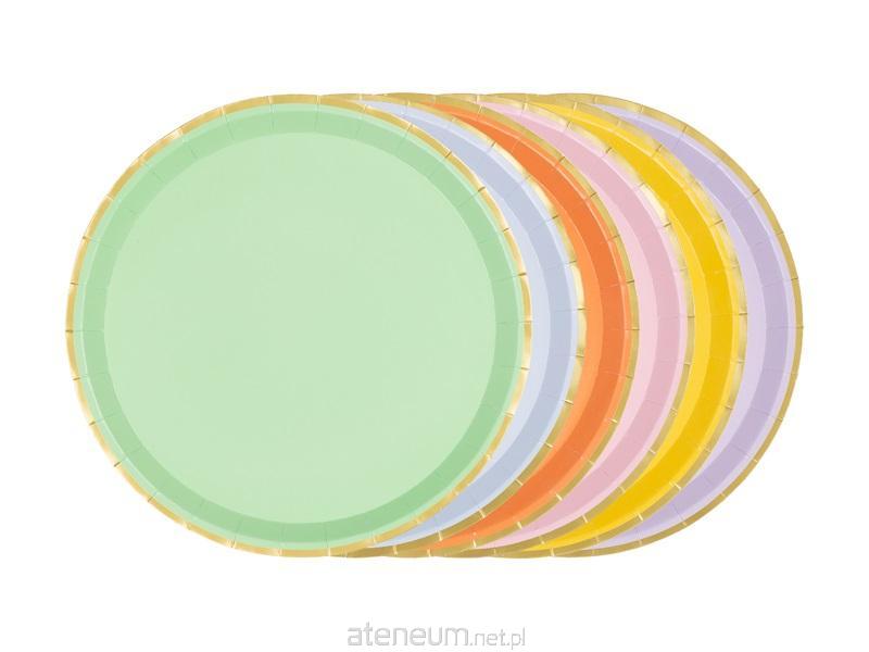 Talerzyki papierowe ze złotymi brzegami, mix kolorów, średnica ok. 21 cm(1 op. / 6 szt.)
