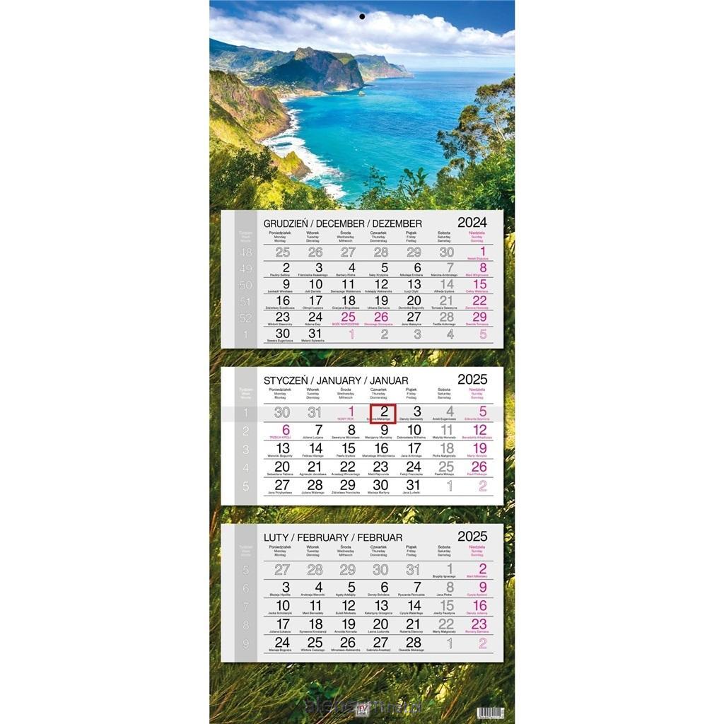 * kalendarz ścienny, trójdzielny z główką płaską z zadrukiem na całych pleckach