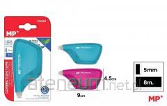 Korektor w taśmie z automatycznym mechanizmem zabezpieczającym przed zabrudzeniem i uszkodzeniami. Ergonomiczny kształt zwiększa komfort użytkowania. Wyjątkowo odporna taśma nie rozrywa się ani nie pęka. Korektor szybko schnie, dzięki czemu poprawek można dokonywać natychmiast po jego użyciu. Możliwość stosowania na wszystkich rodzajach papieru. Szerokość taśmy: 5mm, długość taśmy: 8m. Dostępny w 2 kolorach obudowy: biały, czarny.