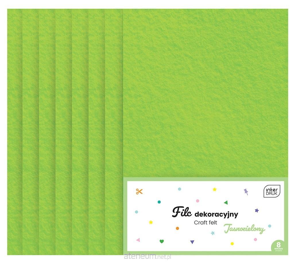 Opakowanie zawiera 8 arkuszy filców w rozmiarze A4 w jasnozielonym kolorze.