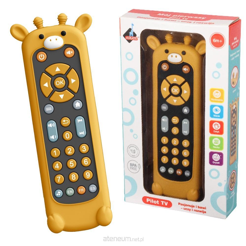 Pilot do telewizora z silikonową osłonką. - ŻYRAFKA Dostępne języki: angielski, hiszpański, francuski. wymiary opakowania: 9.4x3.5x18.1 cm wiek: 6m+