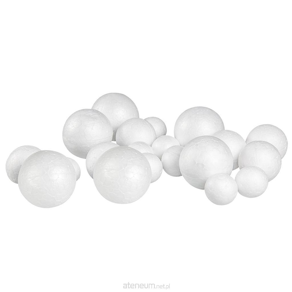 Komplet 20 sztuk elementów o różnej wielkości do samodzielnego wykonania dekoracji. Średnice kul: 2,5-4,5 cm.