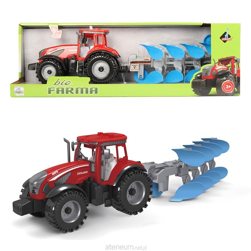 Traktor z pługiem. Traktor wydaje trzy różne dźwięki po naciśnięciu odpowiednich przycisków. zasilanie: 3xAG13 (dołączone) wymiary opakowania: 47.5x12.5x15 cm wiek: 3+