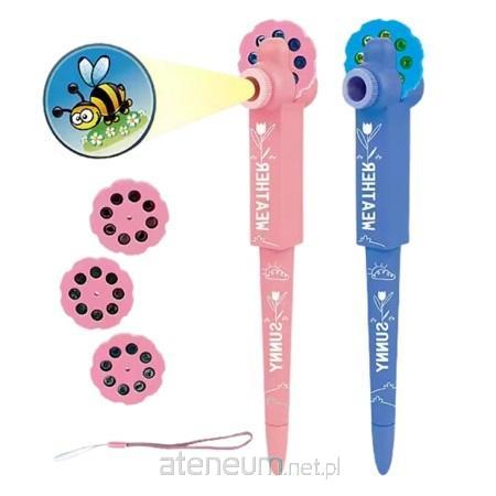 W zestawie znajdują się 3 slajdy do projektora z różnymi obrazkami. Możliwość wyświetlania obrazów pomaga rozwijać wyobraźnię dziecka. Dodatkowo długopis wyposażony jest w latarkę, którą można oświetlić otoczenie.