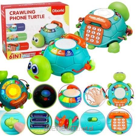 Na skorupie żółwia znajduje się telefon analogowy. Taki telefon jest świetnym sposobem na naukę cyfr. Z tyłu żółwia znajdują przyciski z cyframi, które dziecko może wciskać i uczyć się numerów. Za pomocą słuchawki, maluch może bawić się w odbieranie telefonu i dzwonienie do najbliższych. Dla realistycznych wrażeń, telefon wyposażony jest w dźwięki przywitania i pożegnania oraz kilka różnych dzwonków. Taka zabawa pomaga naśladować dorosłych i rozwija wyobraźnię.
