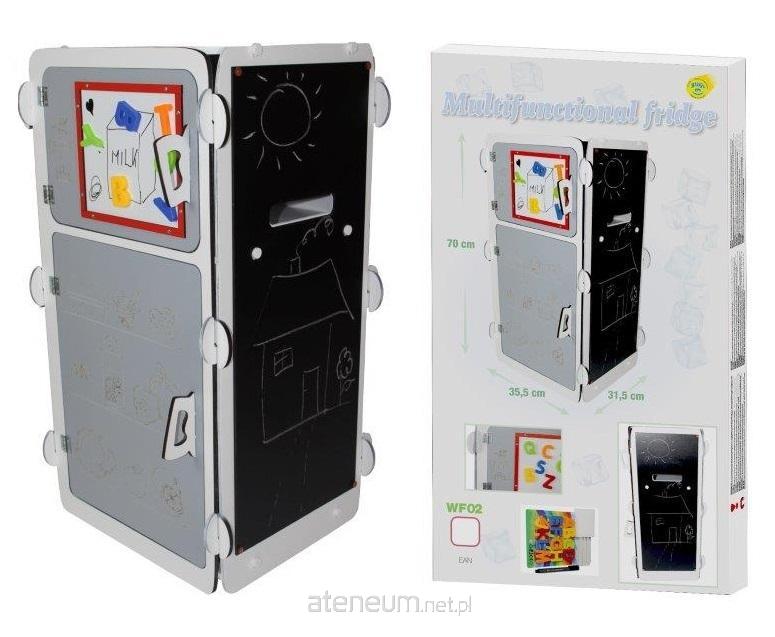 DUŻA, drewniana kolorowa lodówka! Zestaw zawiera lodówkę, magnetyczny notatnik suchościeralny, marker, literki magnetyczne, dużą tablicę kredową oraz zestaw kredy z gąbką. Całość jest spakowana w kolorowe opakowanie.