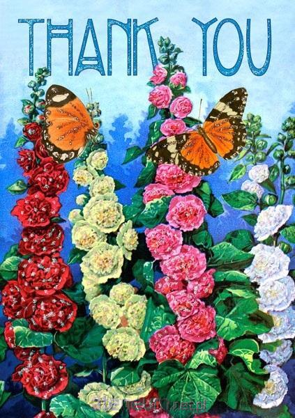 Karnet B6 brokat z kopertą Dziękuję Kwiaty, w środku bez tekstu, wyprodukowany w Wielkiej Brytanii.