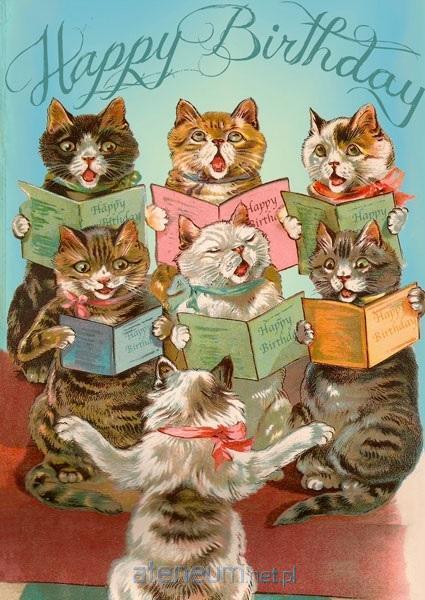 Karnet B6 z kopertą Urodziny Chór 7 kotów, w środku bez tekstu, wyprodukowany w Wielkiej Brytanii.