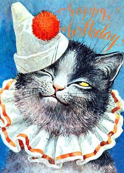 Karnet B6 z kopertą Urodziny Kot - klaun, w środku bez tekstu, wyprodukowany w Wielkiej Brytanii.