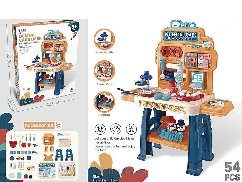 zestaw stół dentysty z wyposażeniem, wym.rozłożonego 61x51x23cm, 54 części; 52,5x42,5x10,5cm, Box