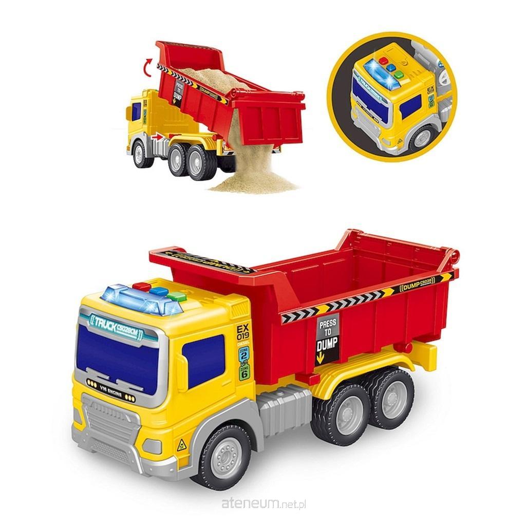 Ta zabawka to model pojazdu wywrotki w skali 1:20, który jest wierną repliką pojazdu miejskiego służącego do transportu i rozładunku materiałów budowlanych lub innych obiektów. Zabawka wykonana jest z wysokiej jakości tworzywa sztucznego, co sprawia, że jest trwała i odporna na uszkodzenia.