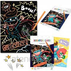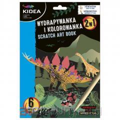 Wydrapywanka z kolorowanką Kidea. Niezastąpiony sposób na nudę dla dzieci w każdym wieku. Wystarczy za pomocą drewnianego rysika zdrapać czarną warstwę a po chwili ukażą się kosmiczne potworki. Po skończonej zabawie możemy obrócić kartkę i zacząć wypełniać kolorowankę ozdabiając ją przy pomocy magicznych naklejek świecących w ciemności dołączonych do zestawu.