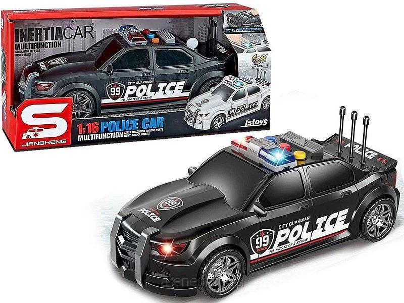 auto policyjne, światło, dźwięk, napęd na koło zam; 28,5x13,5x12,5cm, W/B