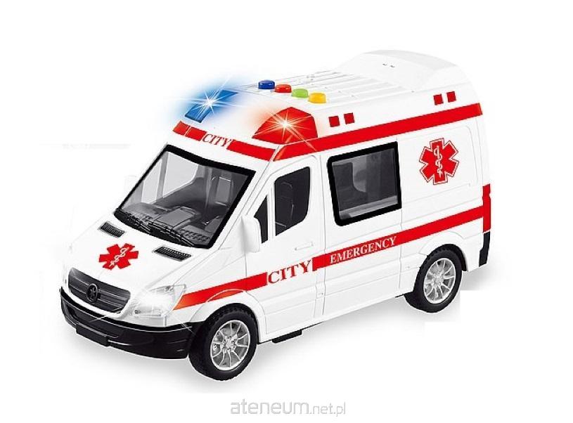 ambulans 1:16, światło, dźwięk, otwierane drzwi; 25x14x10cm, W/B
