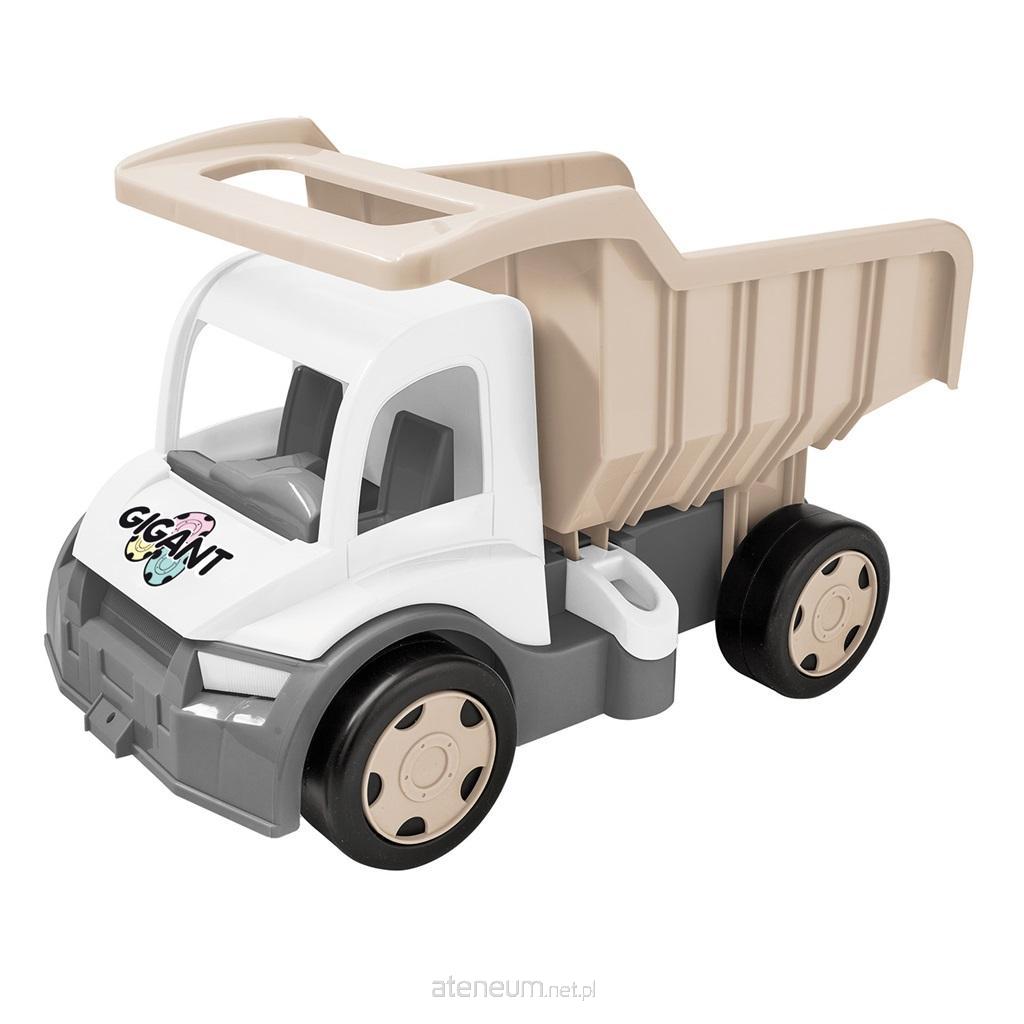 Gigant Wywrotka w kolorze jasnego beżu, szarości oraz bieli to fantastyczny, duży samochód o długości 55 cm. Pojazd posiada zaczep z przodu (możliwość zamontowania sznurka, linki do ciągnięcia) i z tyłu. Ogromna wytrzymałość (nośność do 150 kg) gwarantuje wspaniałą zabawę. Solidna i trwała, wielofunkcyjna konstrukcja rozpali serca wszystkich małych wielbicieli pojazdów ciężarowych i będzie im służyć latami. Wywrotka posiada otwierany kiper z wygodnym uchwytem, na którym dziecko może przewozić, co tylko zechce. Dzieciaki pokochają możliwość ładowania, rozładowywania i przewożenia ulubionych zabawek, a także zwariowanej jazdy w domu i ogrodzie. Zabawa Wywrotką Gigant Truck pobudzi wyobraźnię najmłodszych, wspiera umiejętności manualne i koordynację ruchową dziecka. Zabawka wykonana jest z najwyższej jakości materiałów bezpiecznych dla dzieci. Nadaje się do zabawy zarówno w domu, jak i na świeżym powietrzu. Zwiń Opis techniczny oryginalna kolorystyka beżowo-szaro-biała idealnie pasująca do pokoju dziecięcego w tym samym odcieniu pełni funkcję zabawki oraz ozdoby pokoju jednocześnie solidna i trwała konstrukcja, ogromna wytrzymałość (nośność do 150 kg) gigantyczna wywrotka o dł. 55 cm, posiada otwierany kiper z wygodnym uchwytem 2 zaczepy - z przodu i z tyłu (można doczepić inny pojazd lub przyczepę z serii Gigant oraz linkę do ciągnięcia) może służyć jako pojazd do przewożenia różnych przedmiotów czy zabawek wykonana z najwyższej jakości, trwałego i wytrzymałego na warunki atmosferyczne tworzywa, bezpieczna, wyprodukowana zgodnie z normami unijnymi zabawa z wykorzystaniem Gigant Truck Wywrotka pobudza wyobraźnię dziecka, wspiera rozwój jego umiejętności manualnych i koordynacji ruchowej odpowiednia dla dzieci 1+