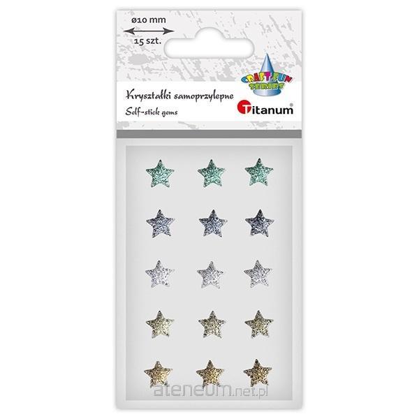 Kryształki samoprzylepne gwiazdki 10x10mm zielone, grafitowe, srebrne, złote 15szt.