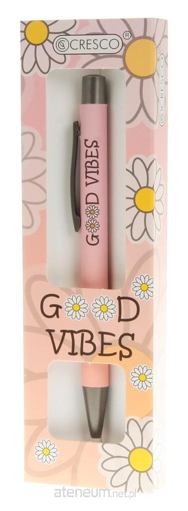 Ciekawa propozycja długopisu HAPPINESS z nadrukiem GOOD VIBES. Mechanizm włączania pstrykany. Wykończenia grafitowe a powierzchnia korpusu softowa. Długopis wyposażony został w wymienny wielkopojemnościowy wkład typu zenith o grubości 1mm linii pisania. Długopis zapakowany w dedykowane etui GB.