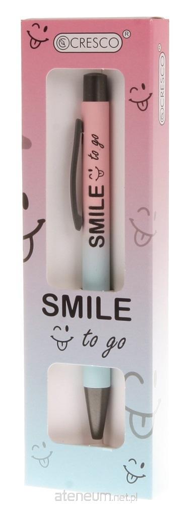 Ciekawa propozycja długopisu HAPPINESS z nadrukiem SMILE to go. Mechanizm włączania pstrykany. Wykończenia grafitowe a powierzchnia korpusu softowa. Długopis wyposażony został w wymienny wielkopojemnościowy wkład typu zenith o grubości 1mm linii pisania. Długopis zapakowany w dedykowane etui GB.