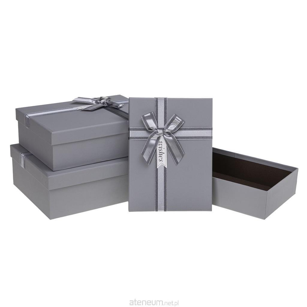 Pudełko prezentowe z kokardą 3szt szary ROZETTE