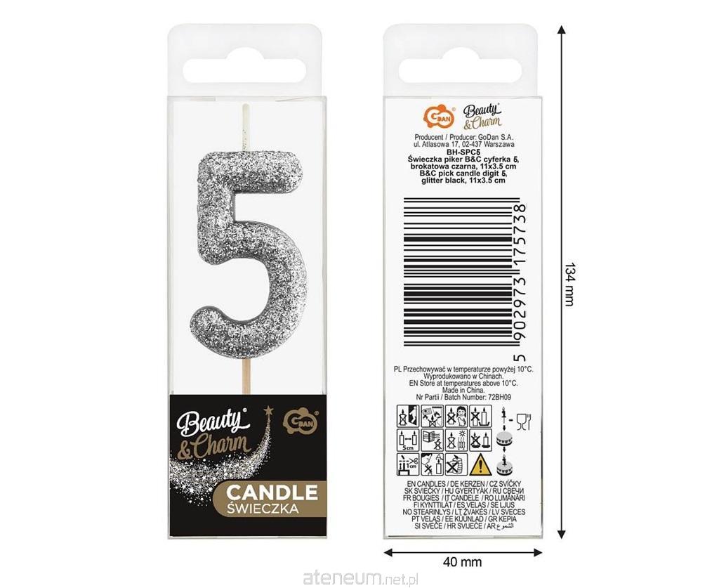 Świeczka piker B&C cyfra 5 metaliczna złota 9,5cm