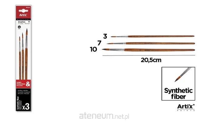 Okrągły profesjonalny pędzel w różnych grubościach.Korpus z naturalnego drewna lakierowanego,okrągła metalowa skuwka i włosie syntetyczne.Długość: 20 cm. Może być stosowany z farbamiakwarelowymi, akrylowymi i temperowymi. Okrągłepędzle służą do wypełniania miejsc i nawilżaniaich wodą. Pozwala na wykonanie cienkichi grubych pociągnięć w zależności od tego,jak dociskamy pędzel do podpory. Jego drobne,punktowe wykończenie jest idealne do tworzeniadetali w pracach. Blister z 3 jednostkami:nr 3, nr 7 i nr 10.