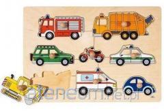 W zestawie znajdują się: 30 drewnianych klocków (12 x 2,5 cm), 5 kart (17 x 20 cm), 1 drewniana kostka do gry, 1 drewniany element równoważni, 1 drewniana kulka.