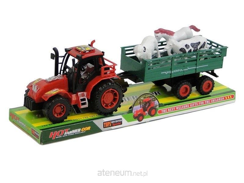 traktor z przyczepą i zwierzętami, całość: 32cm; 34x9.5x11.5cm, PVC