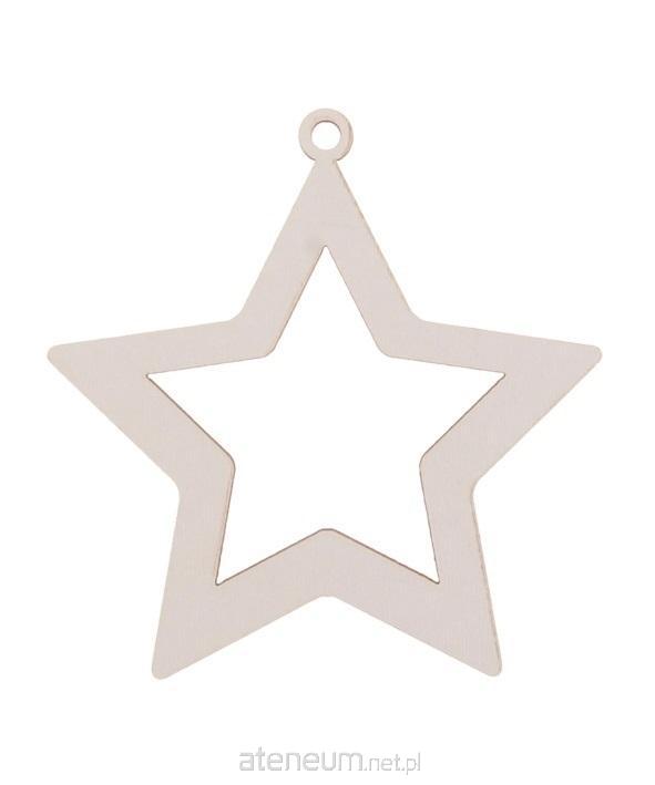 Drewniana bombka w kształcie gwiazdy biała. Średnica 8cm, wysokość całkowita 9cm. W opakowaniu 3szt