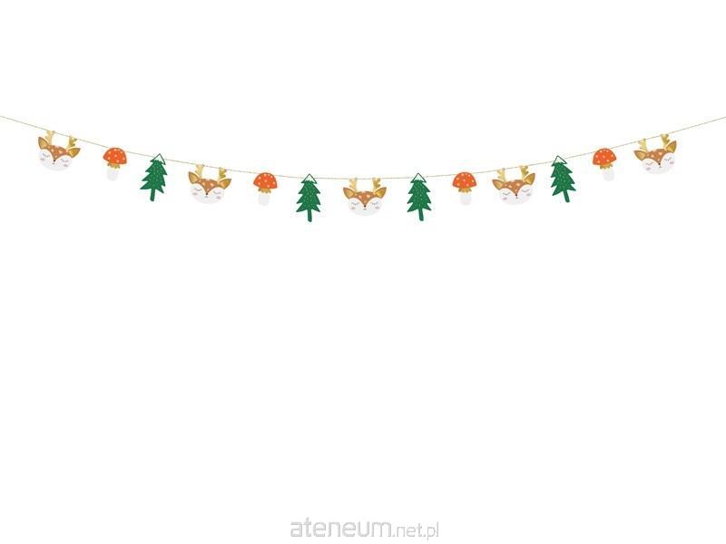 Girlanda papierowa Las, zestaw zawiera 13 papierowych zawieszek (3 wzory) i ok. 3 m złotego sznurka. Długość ok. 1.7 m, wysokość ok. 10 cm. Produkt do samodzielnego zlożenia.