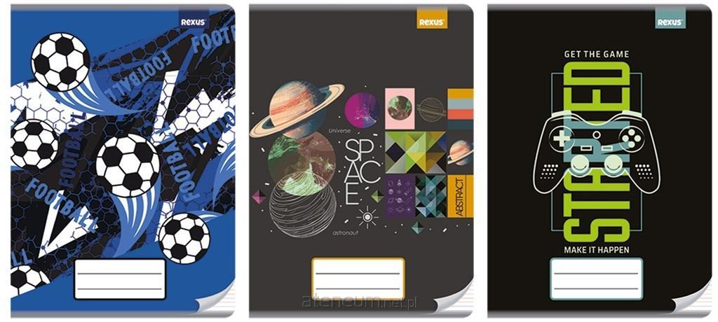 Dodatkowo, środek zeszytu został zadrukowany trzylinią w różnych kolorach, co ułatwia organizację notatek oraz czytelność zapisanych treści.